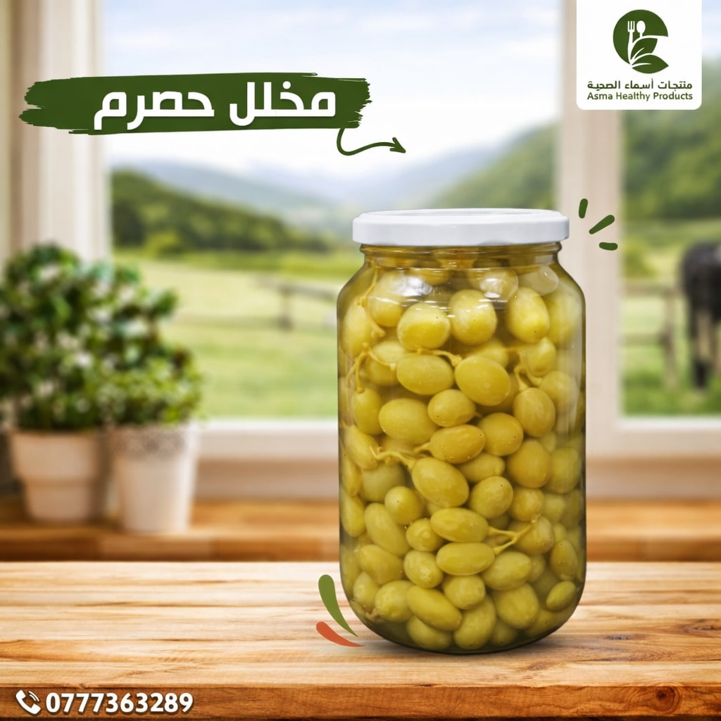 مخلل حصرم بلدي طبيعي 100% مصنوع من خضار طازجة، بدون مواد حافظة، يُحضّر على دفعات صغيرة لضمان الطعم الطازج والنكهة المميزة.